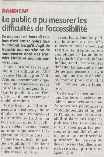A refaire dans quelques mois en invitant personnellement tous les candidats aux municipales à faire un petit tour en fauteuil et signer une sorte de charte d’engagement à rendre l’espace public accessible ?